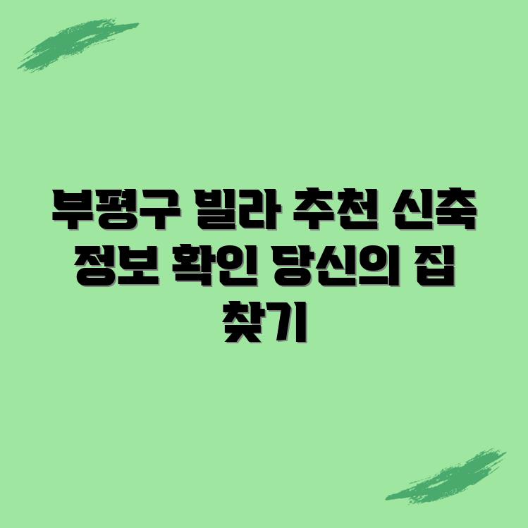 부평구 신축 빌라를 찾고 계시다면, 다양한 가격대에 따라 최적의 선택이 가능하도록 가이드를 제공합니다. 이 가이드의 핵심 목표는 개인의 예산과 필요에 맞는 최상의 빌라를 추천하는 것입니다.