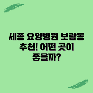 💡 세종 보람동 요양병원의 핵심 정보를 알아보세요. 💡