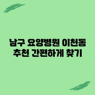 💡 남구 이천동 요양병원에 대한 최신 정보를 지금 바로 알아보세요. 💡